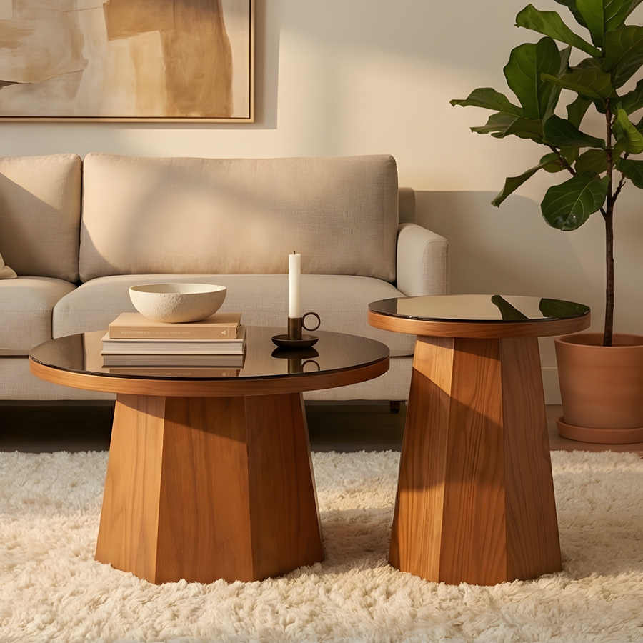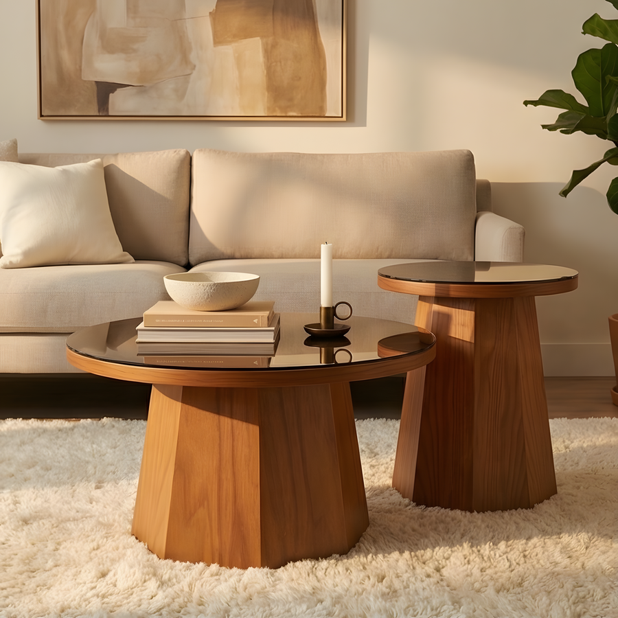 🪵طرابيزة قهوة خشب طبيعي بتصميم عملي وأنيق من Buffy Home