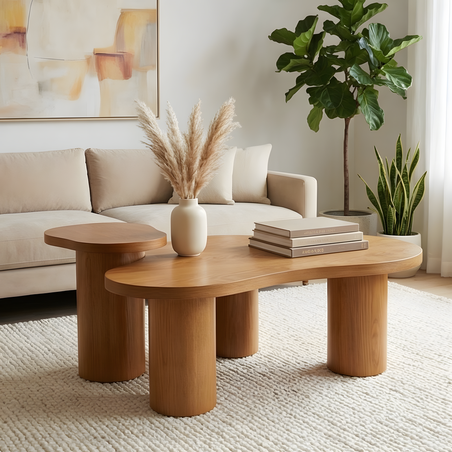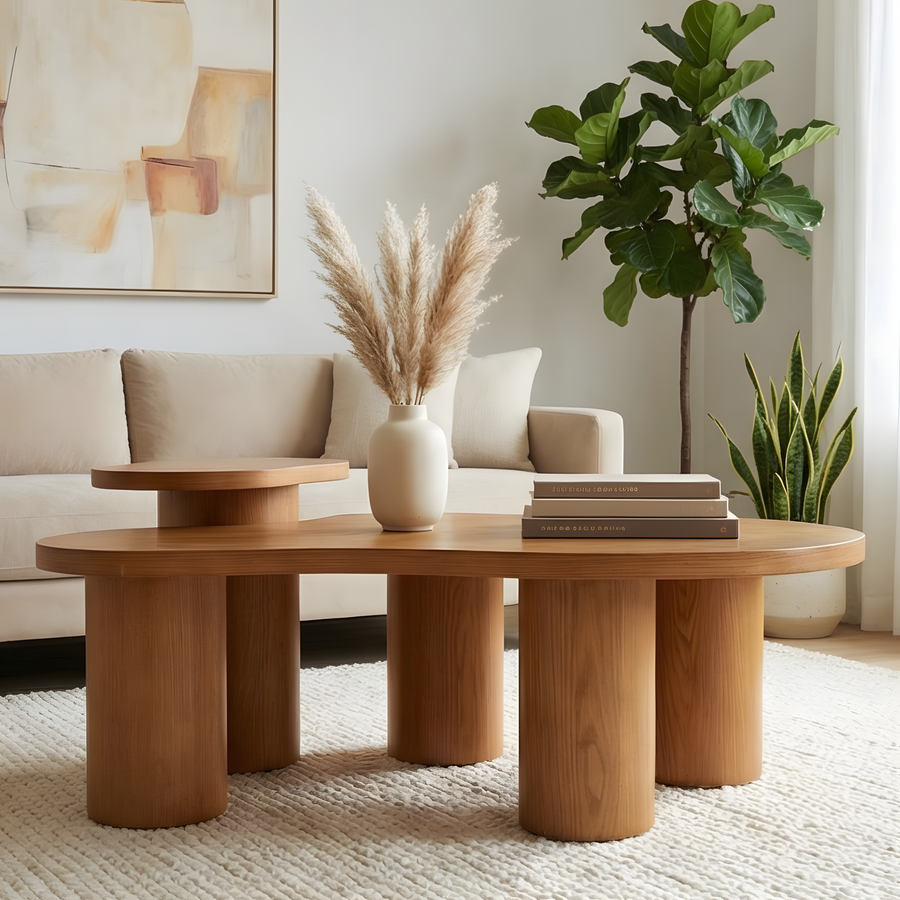 🪵طرابيزة قهوة خشب طبيعي بتصميم عملي وأنيق من Buffy Home