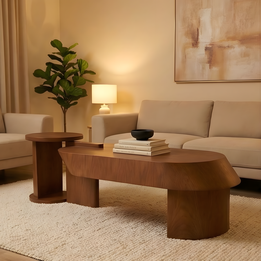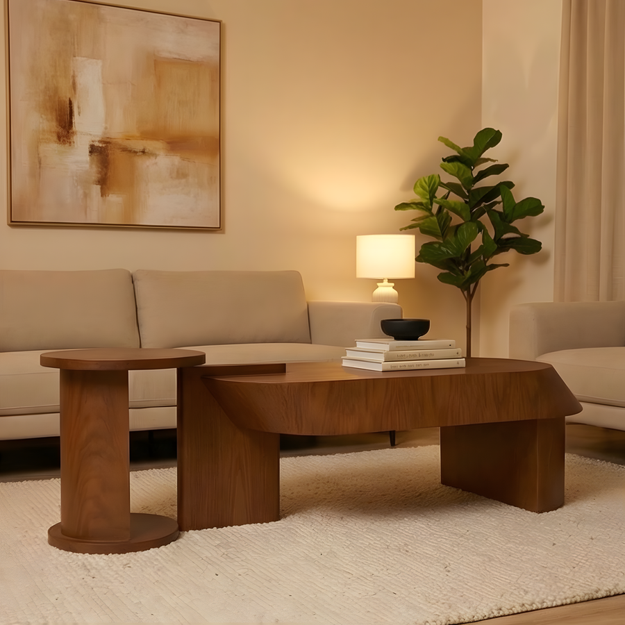 🪵طرابيزة قهوة خشب طبيعي بتصميم عملي وأنيق من Buffy Home