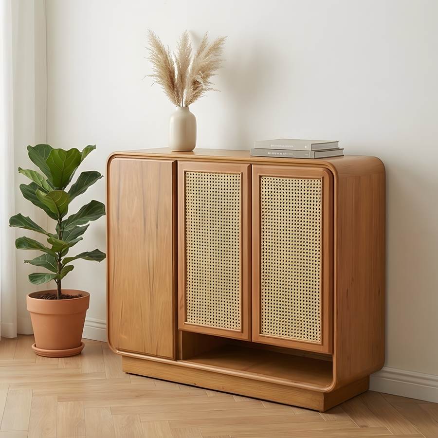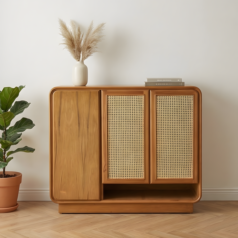جزامة كاملة من الخشب الطبيعي، مصممة لتوفير مساحة تخزين عملية مع الحفاظ على شكل أنيق يكمّل مدخل البيت ويضيف لمسة راقية.