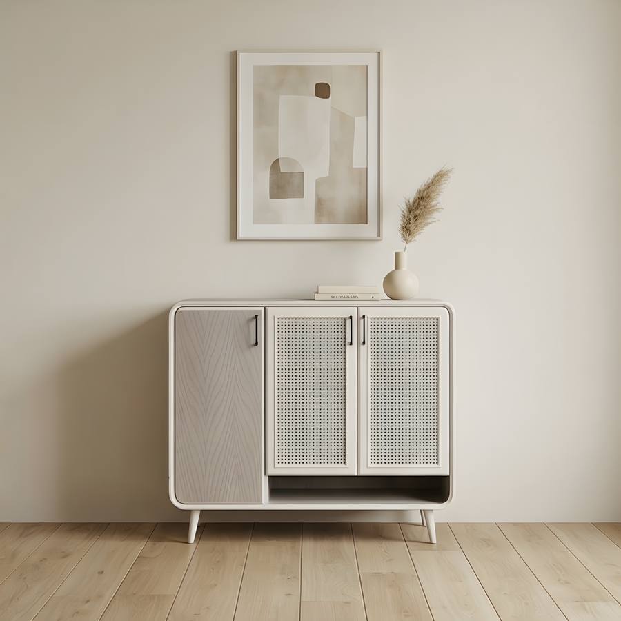 جزامة كاملة من الخشب الطبيعي، مصممة لتوفير مساحة تخزين عملية مع الحفاظ على شكل أنيق يكمّل مدخل البيت ويضيف لمسة راقية.