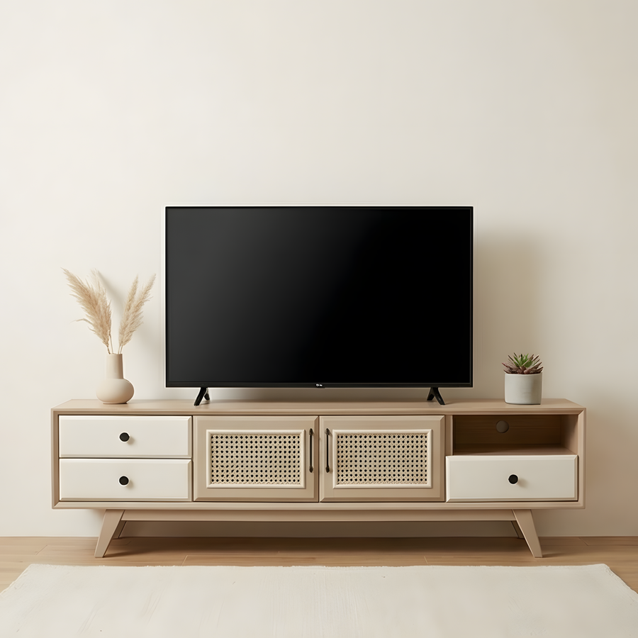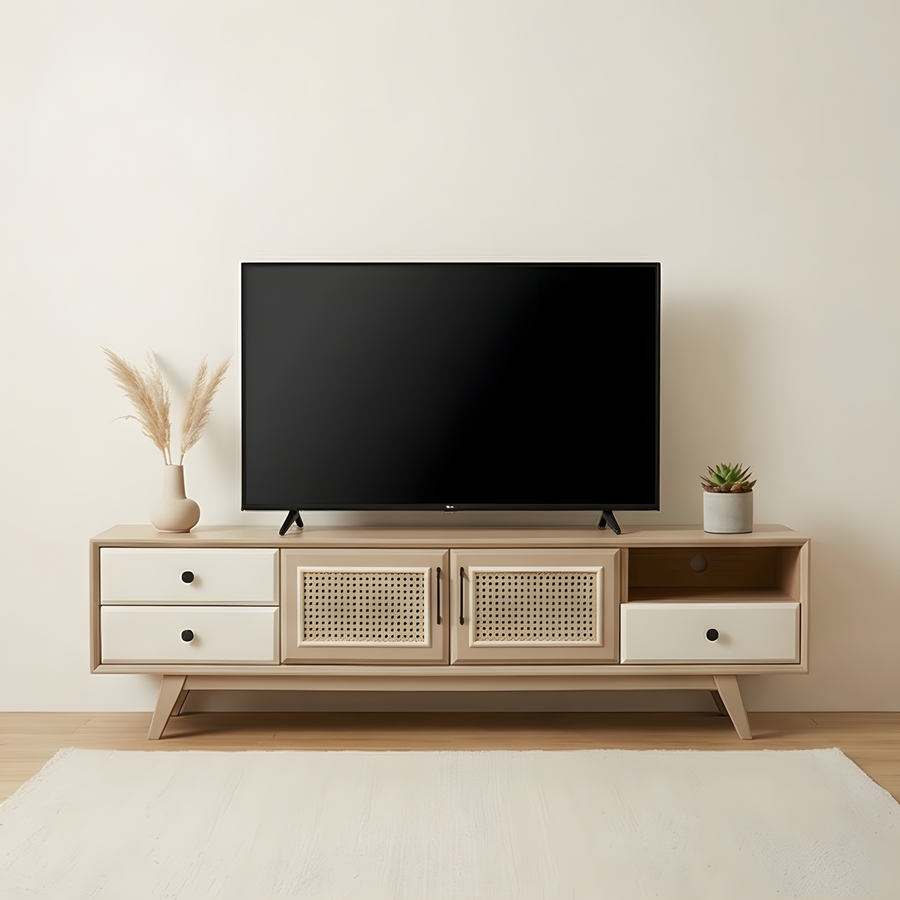 🪵 طرابيزة تلفزيون خشب طبيعي بتصميم عملي وأنيق من Buffy Home
