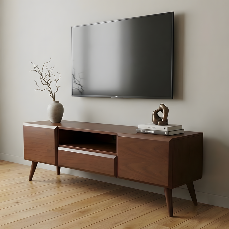 🪵 طرابيزة تلفزيون خشب طبيعي بتصميم عملي وأنيق من Buffy Home